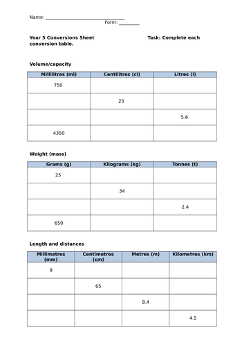 5th grade math worksheets conversion. Browse Printable 5th Grade Scale and Conversion Worksheets ... 5th grade Scale and Conversions Unit Conversion Practice Worksheet Liquid Measurement Conversion Worksheet Liquid Volume: Gallon Chart Worksheet Converting Units of Measurement Worksheet Metric Measurements Worksheet Measurement & Data Review Worksheet Metric Units Place Value Chart (Meters) Worksheet Liquid Measurement Worksheet Browse Printable 5th Grade Scale and Conversion Workbooks ... Fifth Grade Fall Review Packet - Week 3 Workbook Help learners gear up for a new year with this Fifth Grade Fall Review Packet - Week 3, complete with 5 days of activities in math, reading, writing, science, and social studies. Fifth grade math worksheets - free & printable | K5 Learning Our grade 5 math worksheets cover the 4 operations, fractions and decimals at a greater level of difficulty than previous grades. We also introduce variables and expressions into our word problem worksheets . Choose your grade 5 topic: 4 Operations Place Value & Rounding Add & Subtract Multiply & Divide Order of Operations Fractions Grade 5 Math Worksheets: Convert lengths (inches, feet ... Below are six versions of our grade 5 math worksheet on converting units of length between yards, feet and inches. These worksheets are pdf files. Worksheet #1 Worksheet #2 Worksheet #3 Worksheet #4 Worksheet #5 Worksheet #6 5 More Similar: Convert between miles, yards and feet Convert weights More measurement worksheets